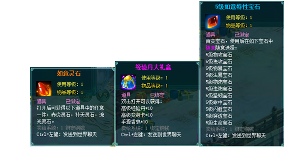 2、活动期间,完成跑商、灵兽护送、循环任务、仙盟日常、宗门任务、百炼成仙、诛邪令、寻宝奇兵等任务,可获得“3级如意宝石*1”额外奖励!
