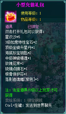 2、充值礼包中的法宝道具均为70级以上玩家才能获得。