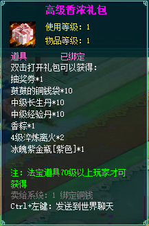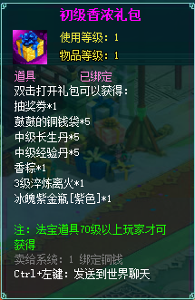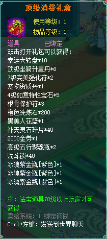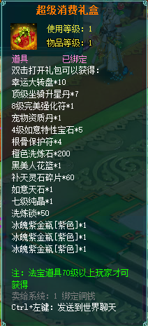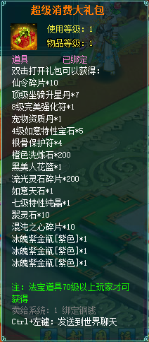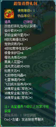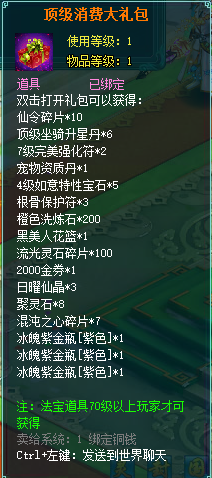 1、消费礼包中的法宝道具等级70级以上玩家才可获得。
