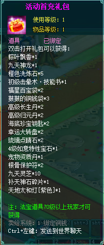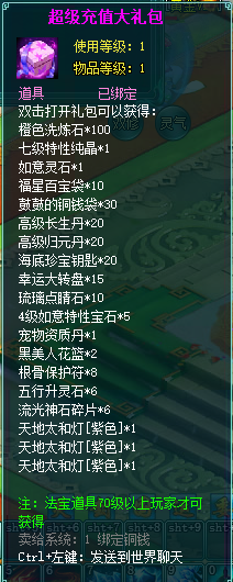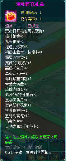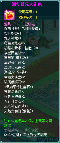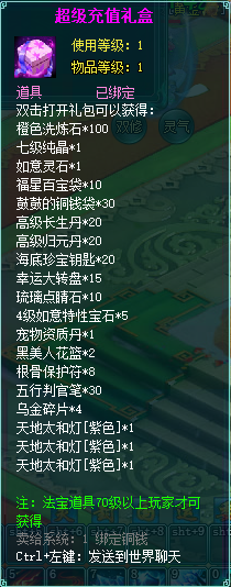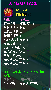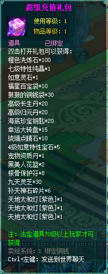 2、充值礼包中的法宝道具均为70级以上玩家才能获得。