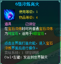 成功淬炼1颗6级宝石,可额外获得:5级淬炼离火*1