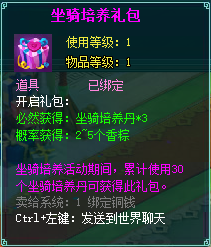 超级经验丹:根据玩家等级不同、离线时间不同存储对应的经验。