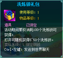 每累计消耗100个洗炼锁 可返还1个洗炼锁礼包