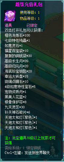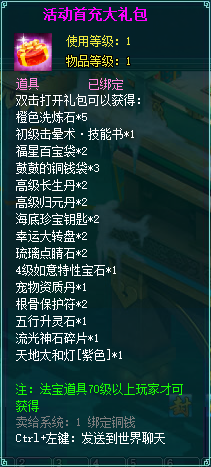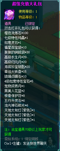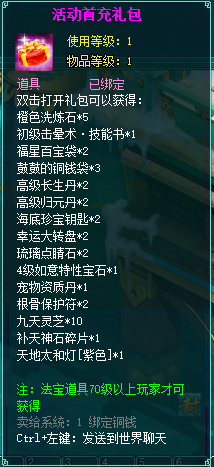 2、充值礼包中的法宝道具均为70级以上玩家才能获得。