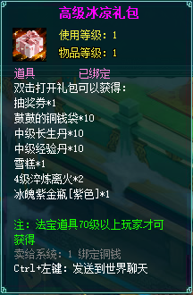 1、冰凉礼盒掉落后有绑定不绑定,每个冰凉礼盒需要配合一个冰凉秘钥才能开启。