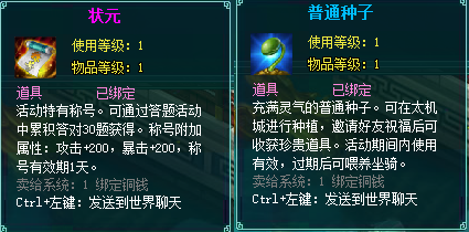 活动期间,每天上午11:00—11:05,晚上20:45—20:50,太机城中心会出现大批智慧精灵,玩家只要答对仙子所提出问题就可随机获得珍贵道具奖励。玩家累积答对一定数量的问题还可以获得额外的奖励。