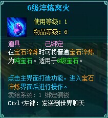 成功淬炼1颗6级宝石,可额外获得:5级淬炼离火*1