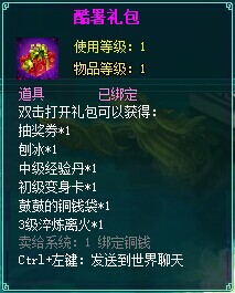 2、酷暑礼包中的物品均为绑定道具,不可交易。