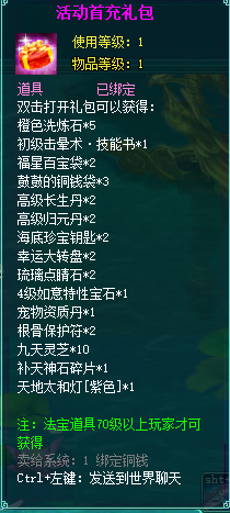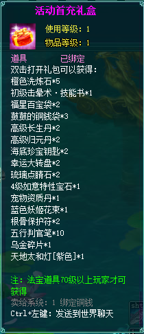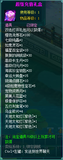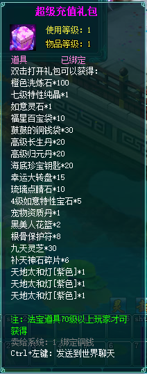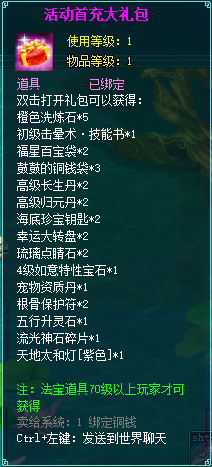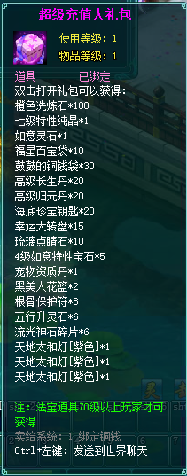 2、充值礼包中的法宝道具均为70级以上玩家才能获得。