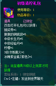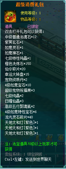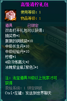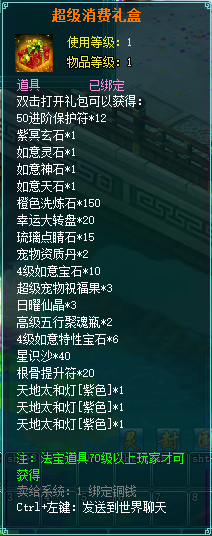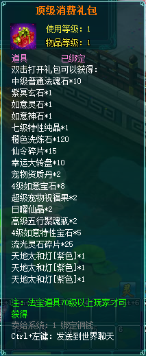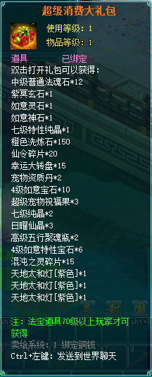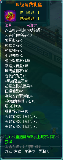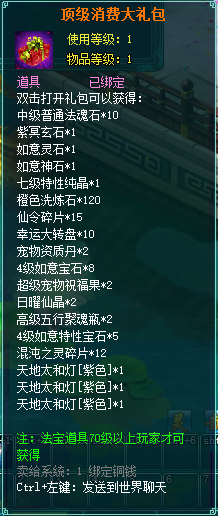 1、消费礼包中的法宝道具等级70级以上玩家才可获得。