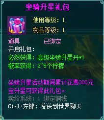 坐骑升星礼包:打开获得高级升星丹*1,有概率获得2~5个柠檬