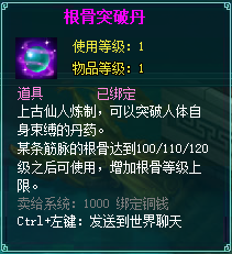 单项筋脉根骨110级 根骨突破丹*3+根骨提升符*10