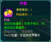 坐骑培养礼包:打开获得坐骑培养丹*3,有概率获得2~5个柠檬