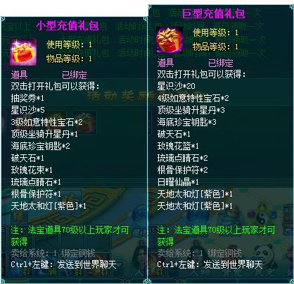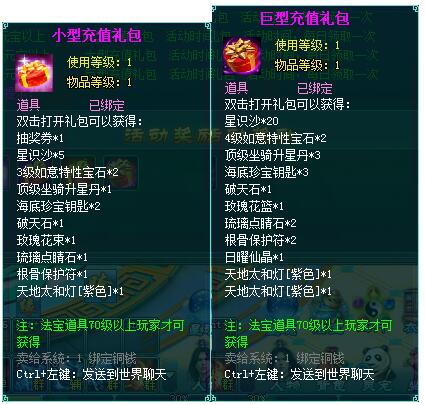 2、充值礼包中的法宝道具均为70级以上玩家才能获得。