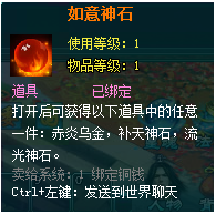 炼化物品时若使用了绑定的道具,则炼化出的物品为绑定。
