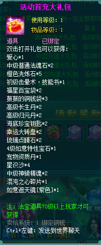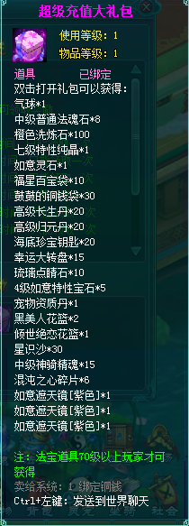 2、充值礼包中的法宝道具均为70级以上玩家才能获得。