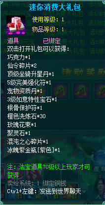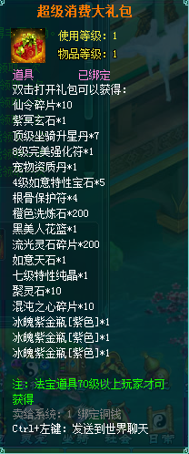 1、消费礼包中的法宝道具等级70级以上玩家才可获得。