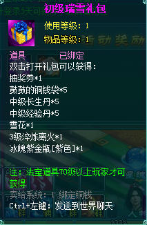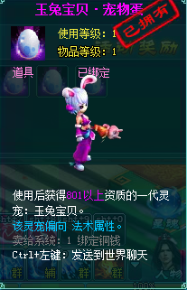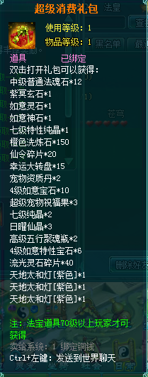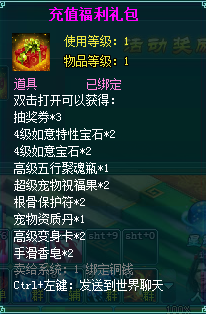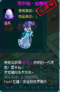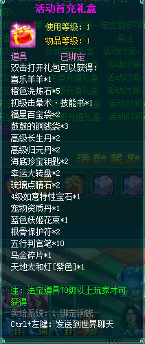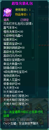 1、以上礼包中的物品除了宠物蛋外,其他全为绑定不可交易。