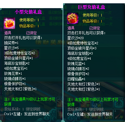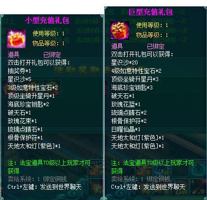 2、充值礼盒中的法宝道具均为70级以上玩家才能获得。