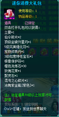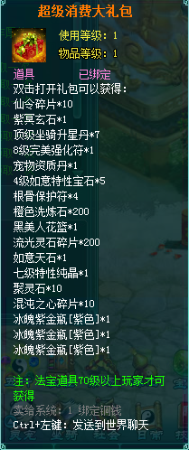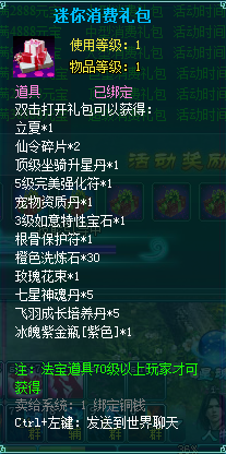 1、消费礼包中的法宝道具等级70级以上玩家才可获得。
