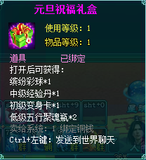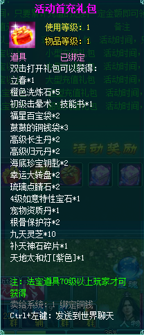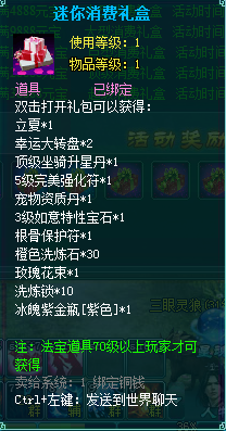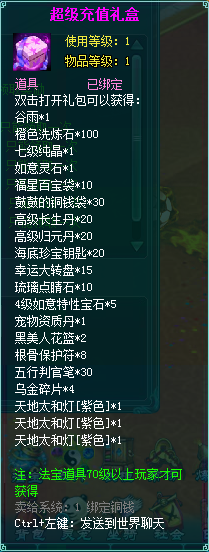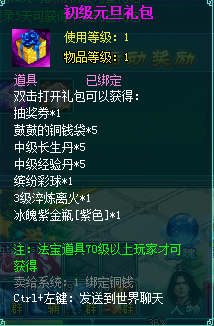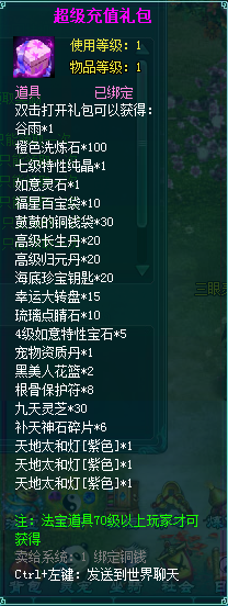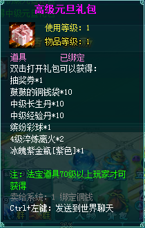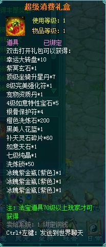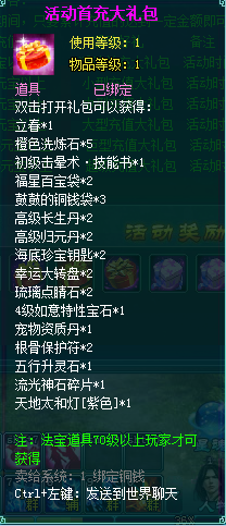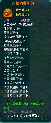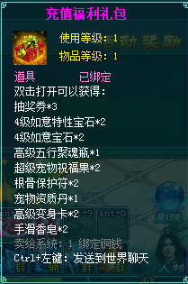 1、以上礼包中的物品除了宠物蛋外,其他全为绑定不可交易。