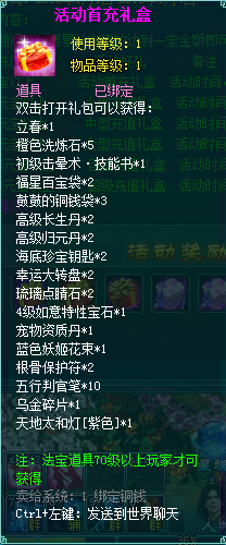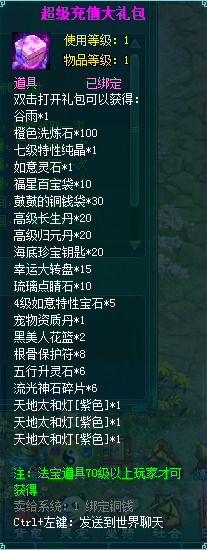 1、充值礼包中的法宝道具均为70级以上玩家才能获得。