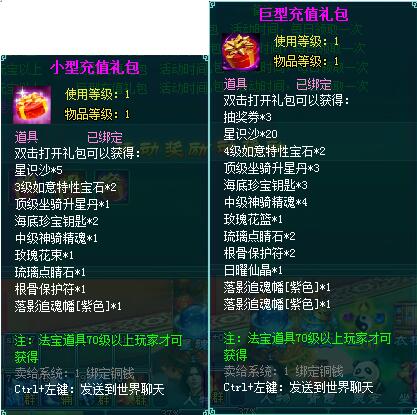 2、充值礼包中的法宝道具均为70级以上玩家才能获得。