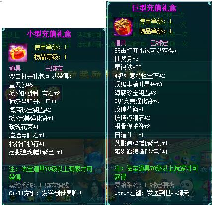 2、充值礼盒中的法宝道具均为70级以上玩家才能获得。
