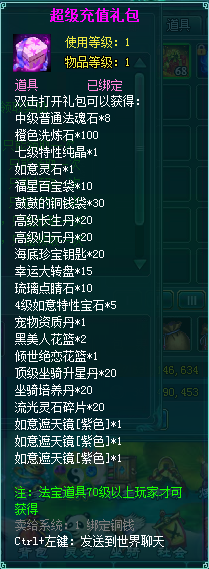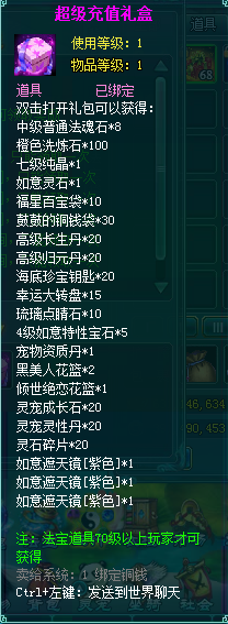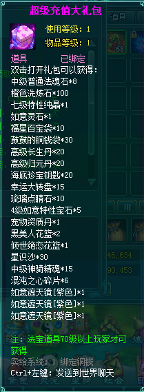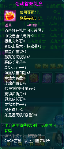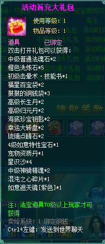 1、充值礼盒中的法宝道具均为70级以上玩家才能获得。