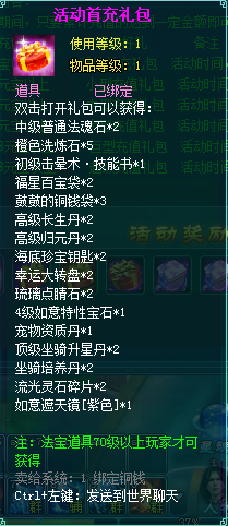 1、充值礼包中的法宝道具均为70级以上玩家才能获得。