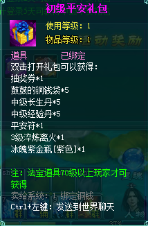 1、累计登录2天可获得初级平安礼包
