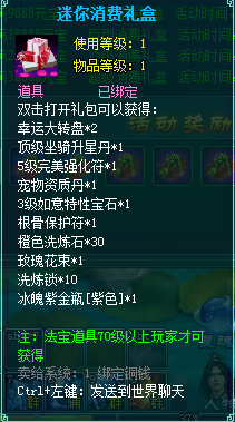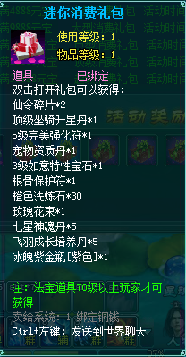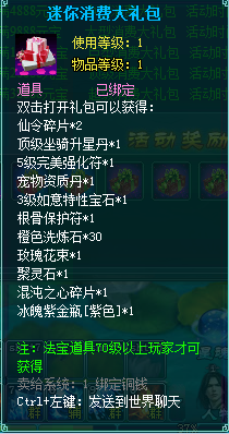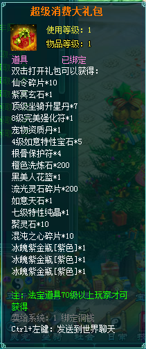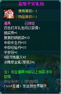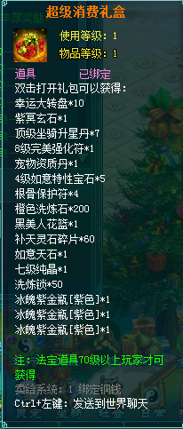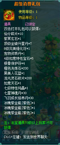1、消费礼包中的法宝道具等级70级以上玩家才可获得。