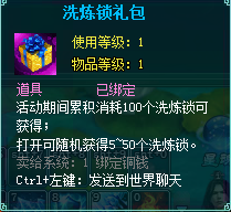 每累计消耗100个洗炼锁 可返还1个洗炼锁礼包