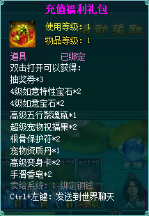 1888元宝以上 小型充值大礼包 活动时间、只能领取一次