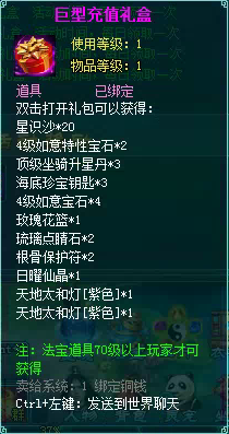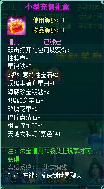 2、充值礼盒中的法宝道具均为70级以上玩家才能获得。