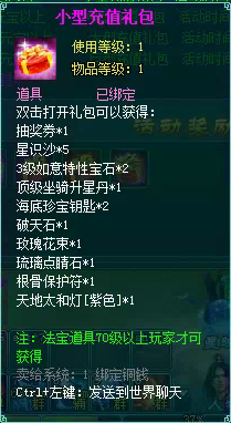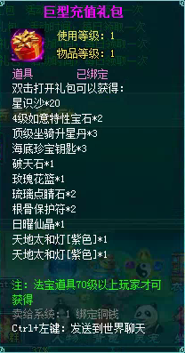 2、充值礼包中的法宝道具均为70级以上玩家才能获得。