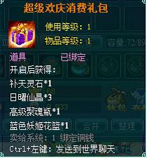 3.使用消费礼包有机会获得补天灵石,赤炎乌金,日曜仙晶等珍贵道具。
