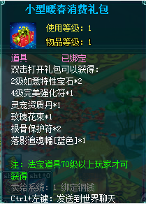 | 消费满2888元宝 | 小型暖春消费礼包 | 活动时间,只能领取一次 |