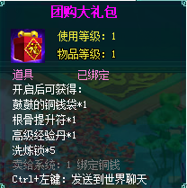 2,每件商品前20名参与团购的玩家将额外获得系统奖励团购大礼包一份;