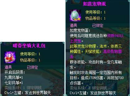 【活动内容】:春暖花开,感恩回馈。活动期间,情侣坐骑礼包,如意宠物蛋,高级聚魂瓶等商品将以超级优惠的价格出现在商城抢购区域,数量有限,心动不如行动,你还在等什么!