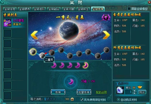 坐骑炼神分为九重天·星辰。