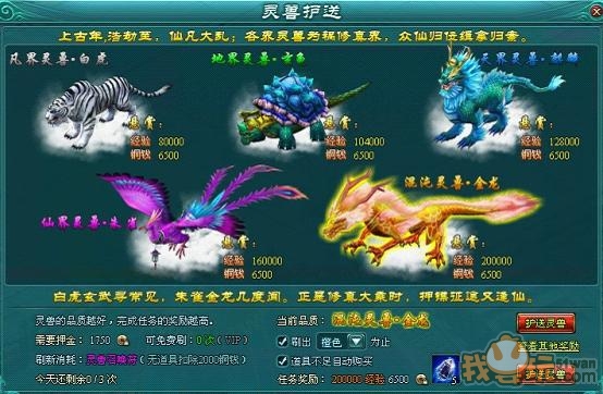 活动内容:提升成长可以大幅提高灵宠属性,成长达到一定数值还能获得额外的属性奖励和灵宠技能空格。在活动时间内达到指定灵宠成长目标的玩家可以获得丰厚奖励。