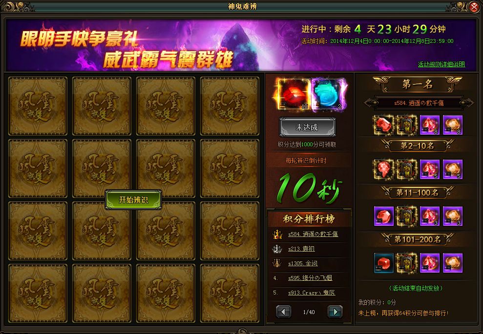 活动期间,每成功辨识一次将获得积分,积分越高的玩家将获得越给力的奖励;