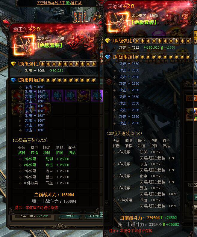 天之道,损有余而补不足,成为一方霸王之后的目标当然是立地为王,成为一方王者,君临天下,天道套装绝对不容错过!不仅在属性上超越霸王装,其独特的加成天道战匣的属性更是令霸王套装望尘莫及