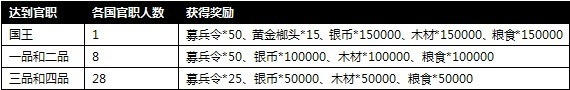 活动内容:截至活动结束,各国四品以上官员(共计17位),均可获得丰厚奖励。