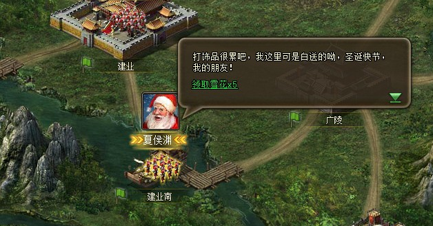 Merry Christmas!圣诞期间,世界地图上出现好多好多礼盒、彩球和雪花,努力收集它们吧!用它们装扮自己的圣诞树,就能收获粮食、经验、镔铁等圣诞好礼哦!完美装扮圣诞树,更有饱含点券、免费幻影、免费至尊洗炼次数等多重好礼的圣诞惊喜大礼包呢!