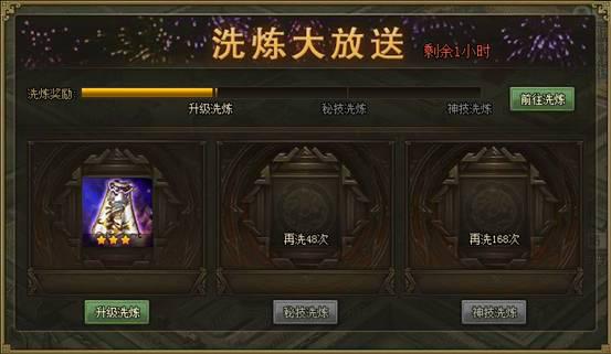 活动内容:活动期间每一天,达到以下装备洗炼要求,即可获赠免费至尊洗炼次数,并获得特殊洗炼机会。