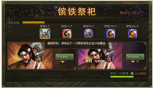 1. 每3次镔铁祭祀,可额外获得5000镔铁赠送;
