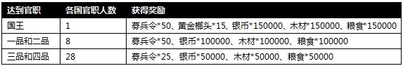 活动内容:截至活动结束,各国四品以上官员(共计17位),均可获得丰厚奖励。