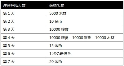 活动内容:活动期间只要充值任意金额,即可获得50金币、粮食、银币、木材各10万、募兵令20个、黄金锤4个、丹书铁券2个!